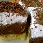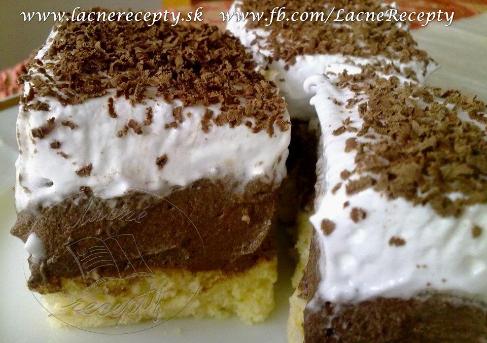 - Nad parou s ručným mixérom vyšľaháme z bielkov a cukru tvrdú penu, ktorú natrieme na kakaový krém. Posypeme so strúhanou čokoládou alebo s čokoládovou polevou a na chladnom mieste necháme niekoľko hodín odležať. Pred podávaním nakrájame.